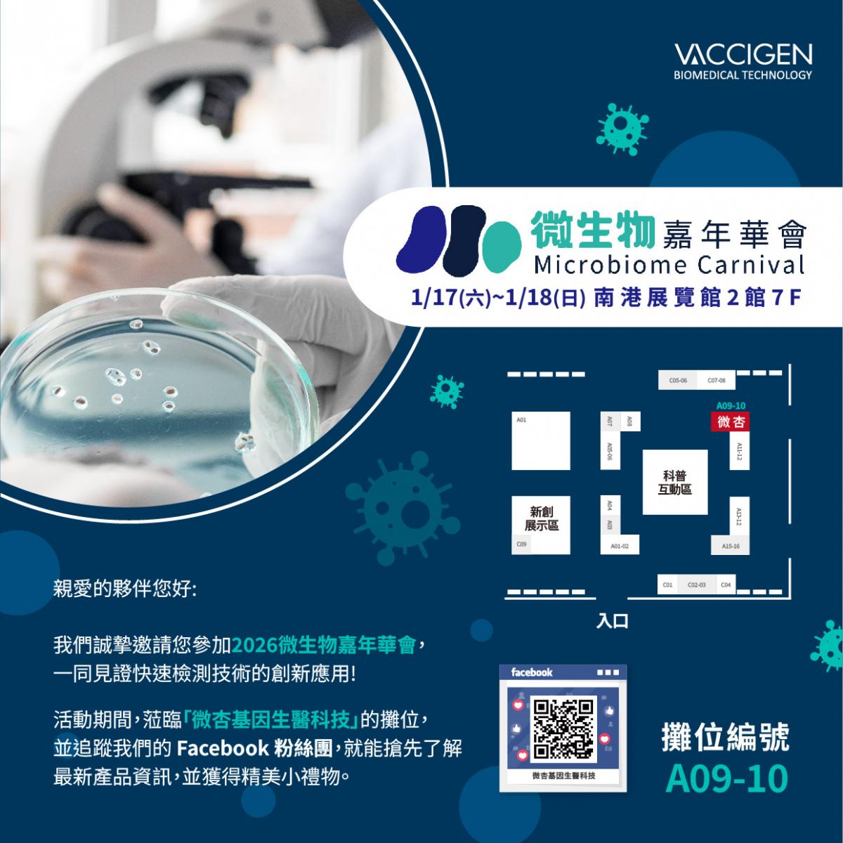 2026微生物嘉年華會於1/17(六)~1/18(日)盛大展出,微杏基因誠摯邀請您前來一同參與!